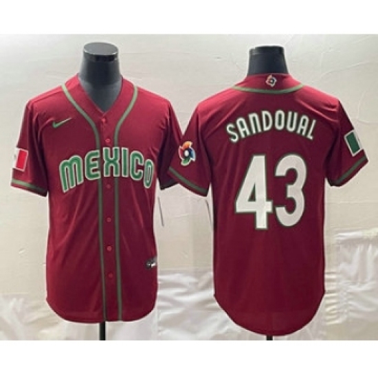 Men's Mexico Baseball #43 Patrick Sandoval 2023 Red World Classic Stitched Jersey