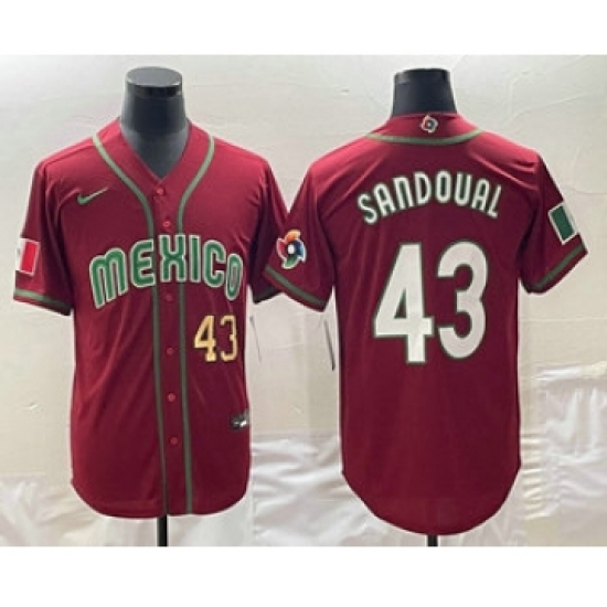 Men's Mexico Baseball #43 Patrick Sandoval Number 2023 Red World Classic Stitched Jerseys