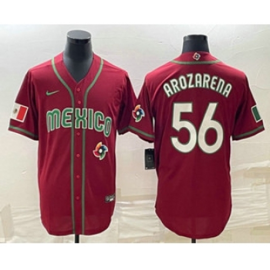 Men's Mexico Baseball #56 Randy Arozarena 2023 Red World Classic Stitched Jersey