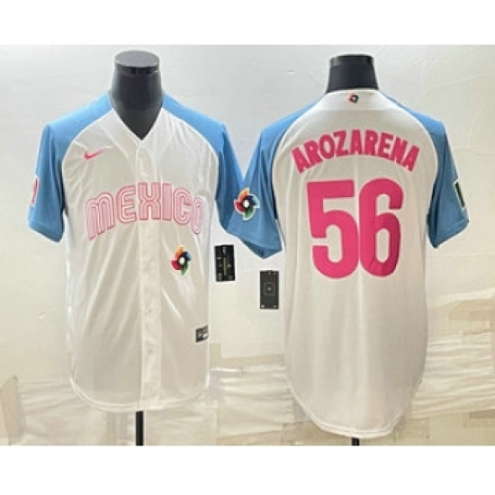 Men's Mexico Baseball #56 Randy Arozarena 2023 White Blue World Classic Stitched Jersey1