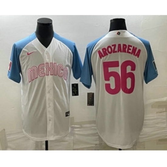 Men's Mexico Baseball #56 Randy Arozarena 2023 White Blue World Classic Stitched Jersey2