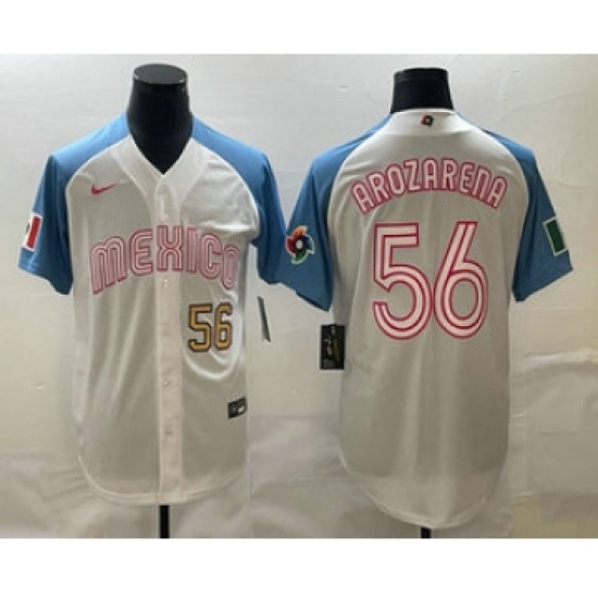 >Men's Mexico Baseball #56 Randy Arozarena Number 2023 White Blue World Classic Stitched Jerseys