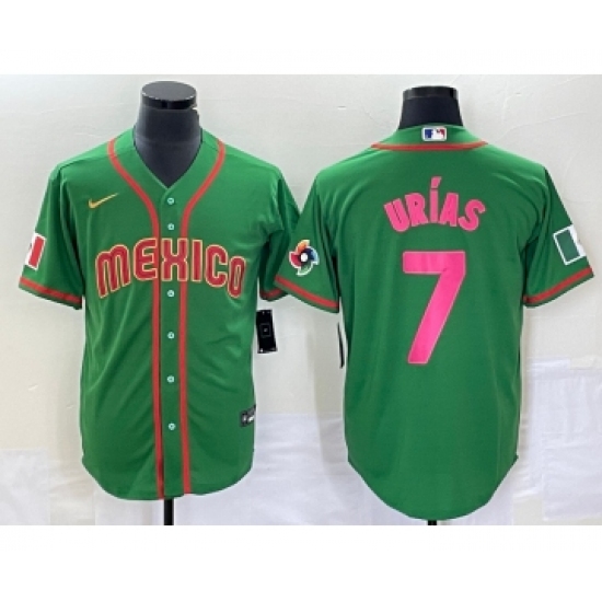 Men's Mexico Baseball #7 Julio Urias 2023 Green World Classic Stitched Jersey3