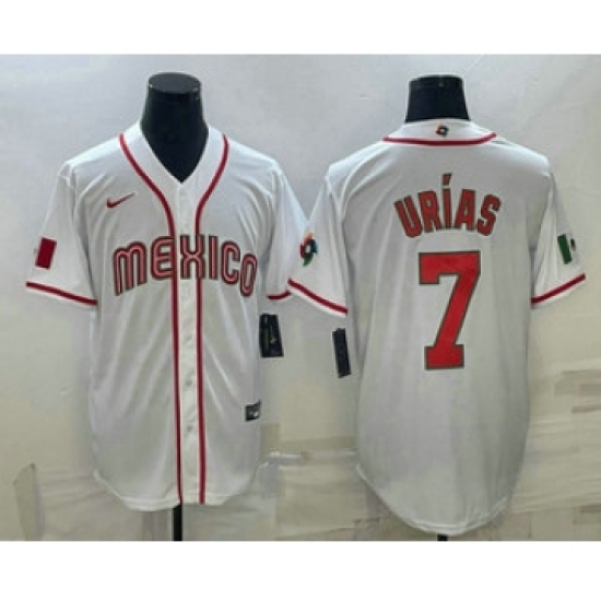 Men's Mexico Baseball #7 Julio Urias 2023 White World Baseball Classic Stitched Jersey
