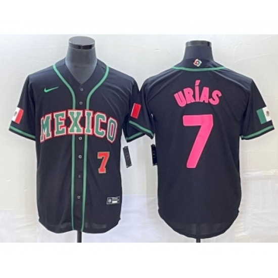 >Men's Mexico Baseball #7 Julio Urias Number 2023 Black Pink World Classic Stitched Jersey1