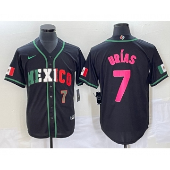>Men's Mexico Baseball #7 Julio Urias Number 2023 Black World Baseball Classic Stitched Jersey2