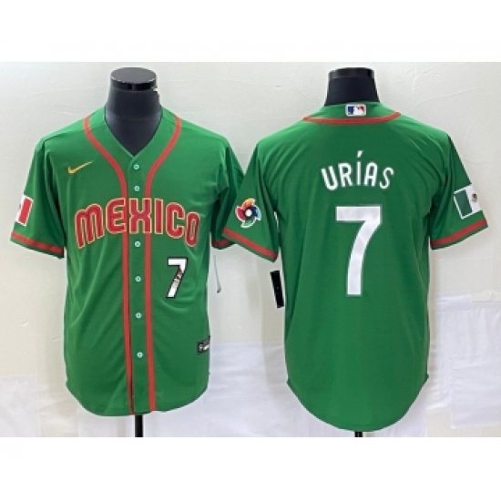 >Men's Mexico Baseball #7 Julio Urias Number 2023 Green World Classic Stitched Jersey