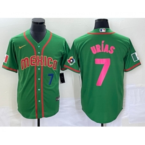 Men's Mexico Baseball #7 Julio Urias Number 2023 Green World Classic Stitched Jersey11