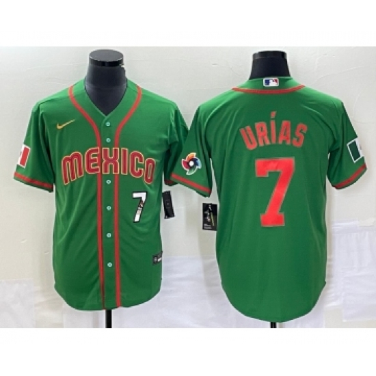 Men's Mexico Baseball #7 Julio Urias Number 2023 Green World Classic Stitched Jersey14