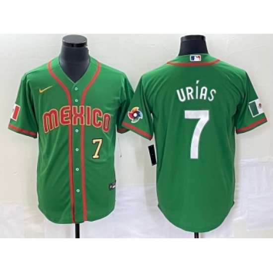 >Men's Mexico Baseball #7 Julio Urias Number 2023 Green World Classic Stitched Jersey2