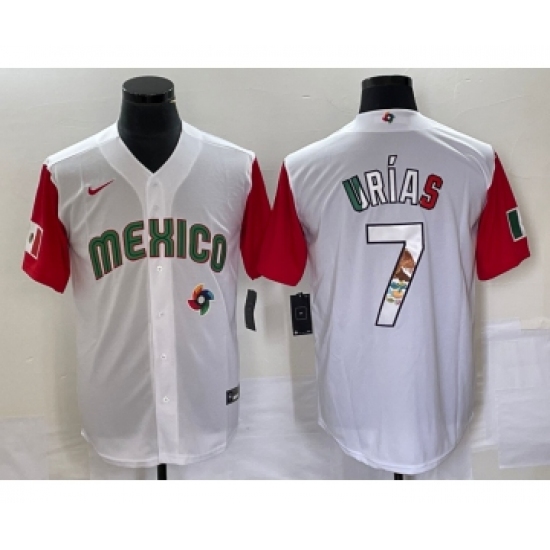 Men's Mexico Baseball #7 Julio Urias Number 2023 White World Baseball Classic Stitched Jersey1