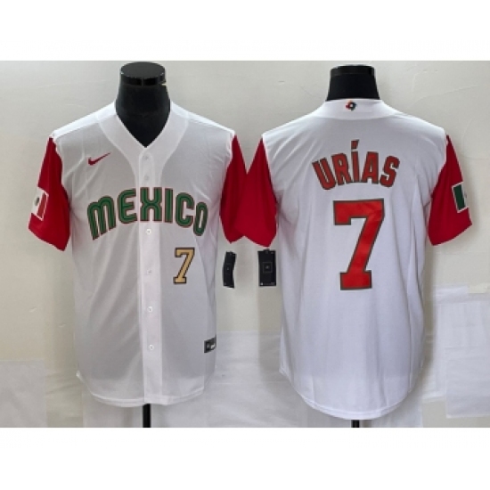 Men's Mexico Baseball #7 Julio Urias Number 2023 White Red World Classic Stitched Jersey33