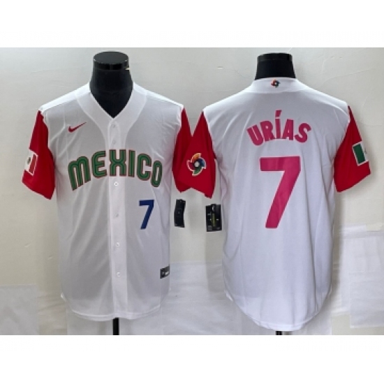 Men's Mexico Baseball #7 Julio Urias Number 2023 White Red World Classic Stitched Jersey