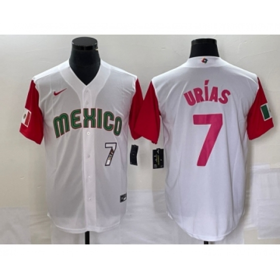 Men's Mexico Baseball #7 Julio Urias Number 2023 White Red World Classic Stitched Jersey 38