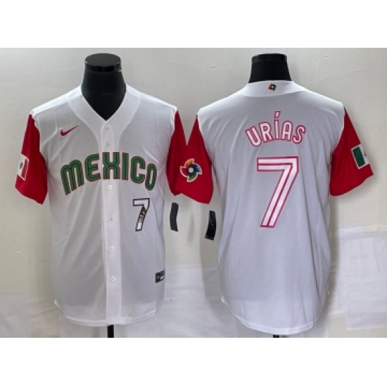Men's Mexico Baseball #7 Julio Urias Number 2023 White Red World Classic Stitched Jersey42