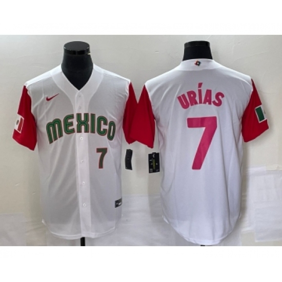 Men's Mexico Baseball #7 Julio Urias Number 2023 White Red World Classic Stitched Jersey24