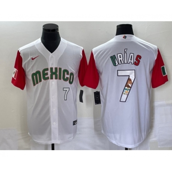 >Men's Mexico Baseball #7 Julio Urias Number 2023 White Red World Classic Stitched Jersey9
