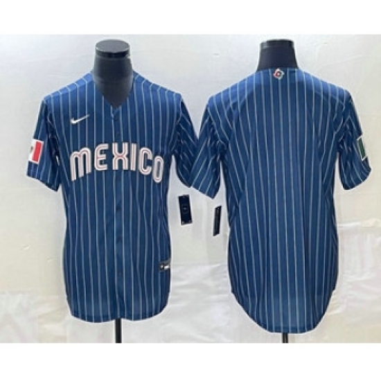 Men's Mexico Baseball Blank 2023 Navy Blue Pinstripe World Baseball Classic Stitched Jersey