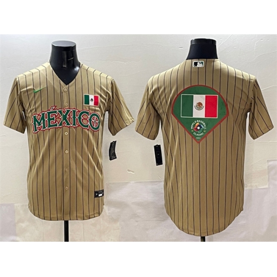 Men's Mexico Baseball Tan 2023 World Baseball Classic Team Big Logo Stitched Jerseys