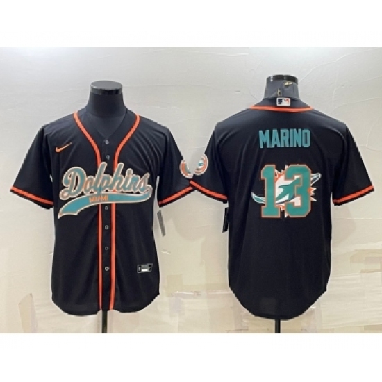 >Men's Miami Dolphins #13 Dan Marino Black Team Big Logo With Patch Cool Base Stitched Baseball Jersey
