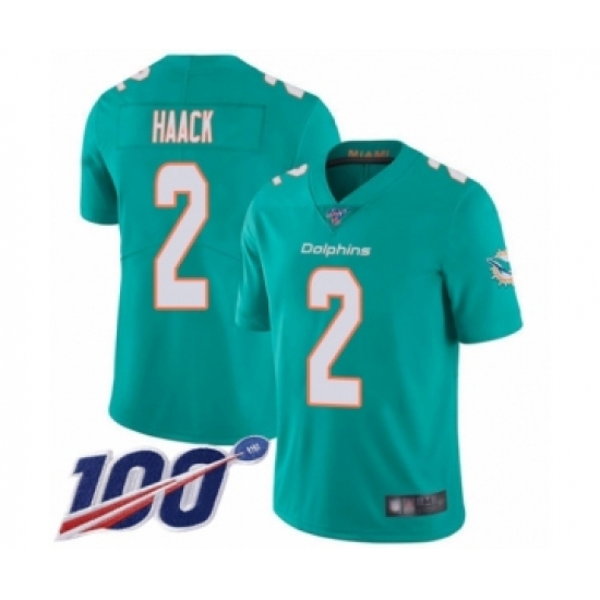 Men's Miami Dolphins #2 Matt Haack Aqua Green Team Color Vapor Untouchable Limited Player 100th Season Football Jersey