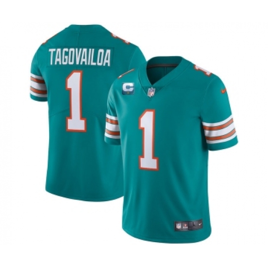 Men's Miami Dolphins 2022 #1 Tua Tagovailoa Aqua With 1-star C Patch Stitched Jersey
