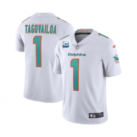 Men's Miami Dolphins 2022 #1 Tua Tagovailoa White With 1-star C Patch Vapor Limited Stitched NFL Jersey