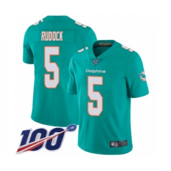 Men's Miami Dolphins #5 Jake Rudock Aqua Green Team Color Vapor Untouchable Limited Player 100th Season Football Jersey