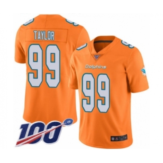 Men's Miami Dolphins #99 Jason Taylor Limited Orange Rush Vapor Untouchable 100th Season Football Jersey