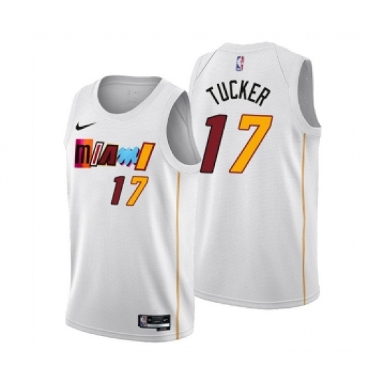 >Men's Miami Heat #17 P.J. Tucker 2022-23 White City Edition Stitched Jersey