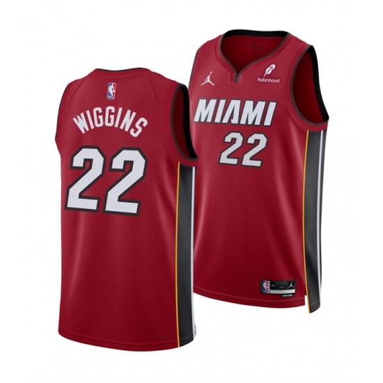 Men's Miami Heat #22 Andrew Wiggins Red 2025 Statement Edition Swingman Stitched Basketball Jersey