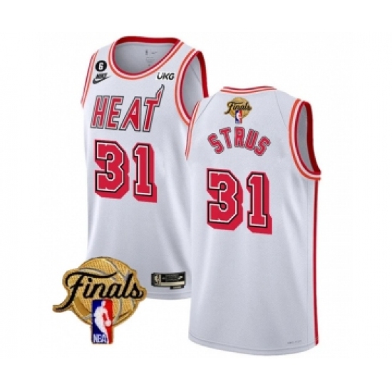Men's Miami Heat #31 Max Strus White 2023 Finals Classic Edition With NO.6 Stitched Basketball Jersey