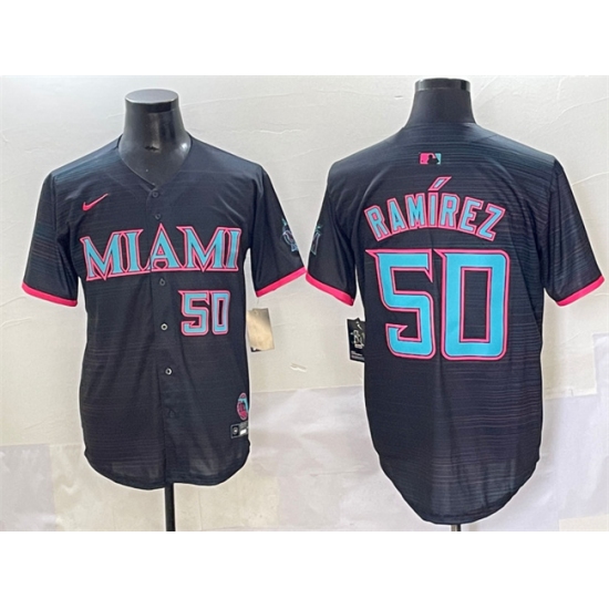 Men's Miami Marlins #50 Agustín Ramírez Black 2025 City Connect Limited Stitched Baseball Jersey