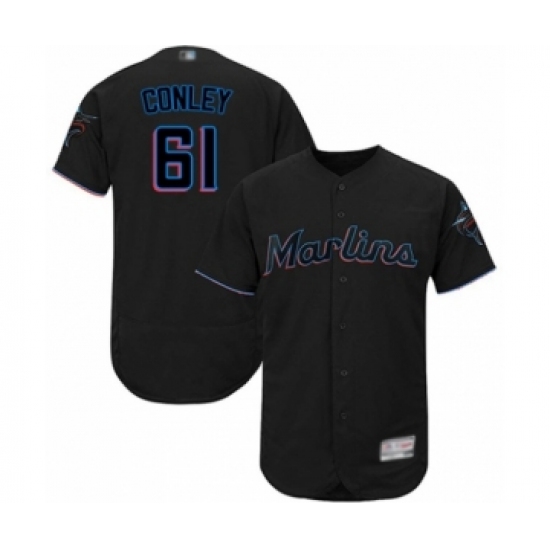 >Men's Miami Marlins #61 Adam Conley Black Alternate Flex Base Authentic Collection Baseball Player Jersey