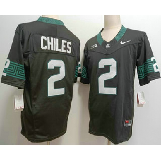 Men's Michigan State Spartans #2 Aidan Chiles Green FUSE College Football Jersey