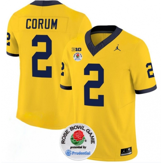 Men's Michigan Wolverines #2 Blake Corum 2023 F.U.S.E. Yellow Rose Bowl Stitched Jersey