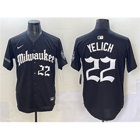 Men's Milwaukee Brewers #22 Christian Yelich Black 'Gothic 414 Shadows Edition' Vapor Premier Limited Stitched Jersey