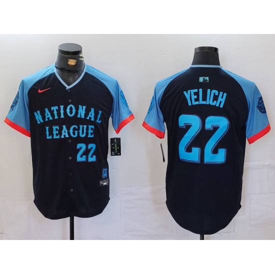 >Men's Milwaukee Brewers #22 Christian Yelich Number Navy 2024 All Star Limited Stitched Jersey