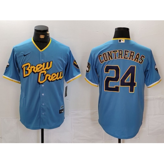 Men's Milwaukee Brewers #24 William Contreras Blue 2022 City Connect Cool Base Stitched Jersey