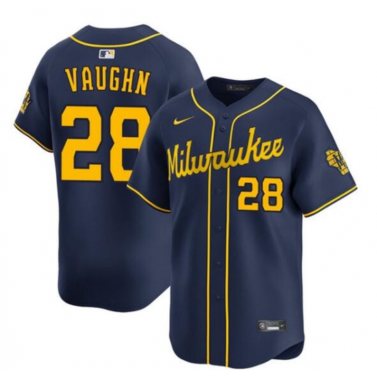 Men's Milwaukee Brewers #28 Andrew Vaughn Navy Alternate Limited Stitched Baseball Jersey