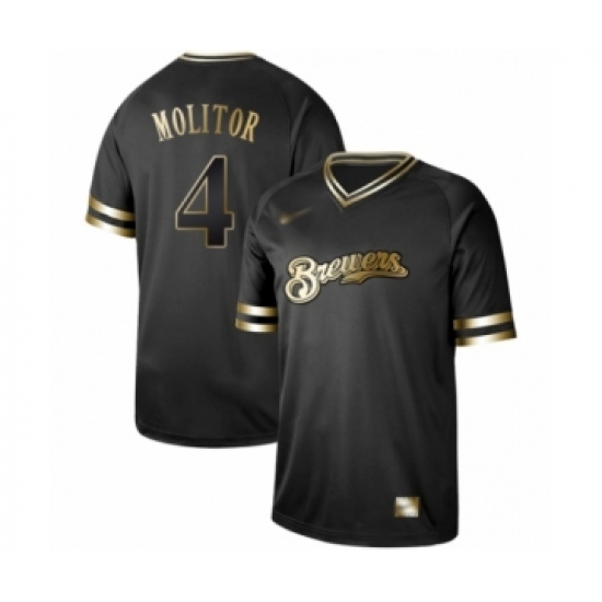 Men's Milwaukee Brewers #4 Paul Molitor Authentic Black Gold Fashion Baseball Jersey
