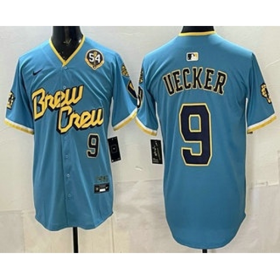 Men's Milwaukee Brewers #9 Bob Uecker Blue City Connect Limited Jersey