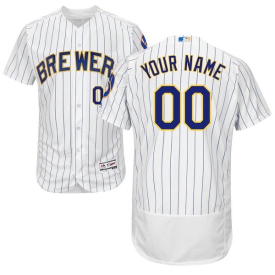 Men's Milwaukee Brewers Majestic Home White Flex Base Authentic Collection Custom Jersey