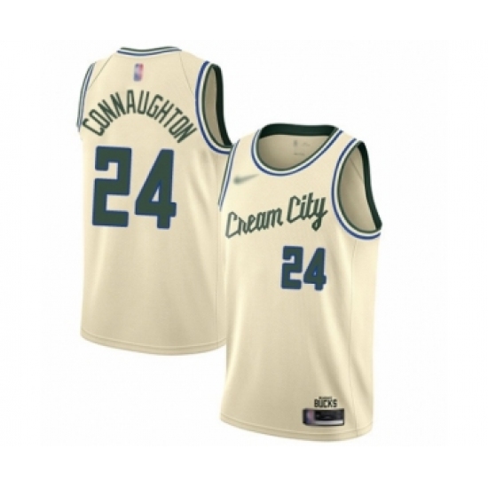 >Men's Milwaukee Bucks #24 Pat Connaughton Swingman Cream Basketball Jersey - 2019 20 City Edition