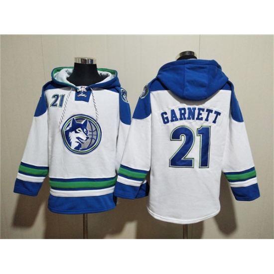 Men's Minnesota Timberwolves #21 Kevin Garnett White Lace-Up Pullover Hoodie