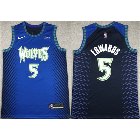 Men's Minnesota Timberwolves #5 Anthony Edwards Blue City Edition Stitched Jersey