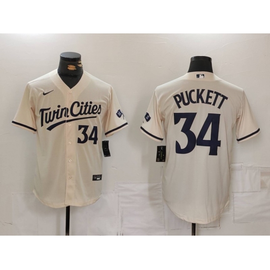 Men's Minnesota Twins #34 Kirby Puckett Number Cream Cool Base Stitched Jersey