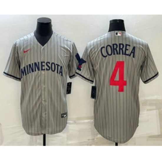Men's Minnesota Twins #4 Carlos Correa 2023 Grey Home Team Cool Base Stitched Jersey
