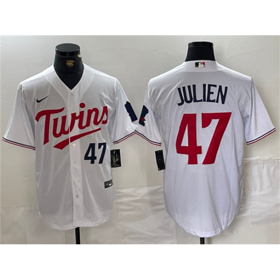 >Men's Minnesota Twins #47 Edouard Julien White Cool Base Stitched Jersey