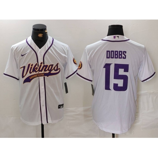 >Men's Minnesota Vikings #15 Joshua Dobbs White Cool Base Stitched Baseball Jersey